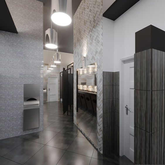 All worship facilities should be equipped with restroom spaces where one may refresh in comfort and access its every area with ease. Designing accessible and appealing restrooms is on the list of many older outdated facilities. In Bethany Church new bathroom facilities were designed with ADA accessibility and children in mind. Both, gentlemen's' and ladies' restrooms incorporate ADA stalls, baby changing stations and children sinks. All surfaces selected are durable and low maintenance. Touchless faucets are wall mounted. Soap dispensers and towel dispensers are builtin behind the mirrors for clean look. In addition, a separate family bathroom was built to accommodate families with children of different ages.